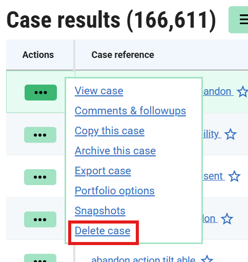 You can also access the same option from a search‑result case list, as shown here.