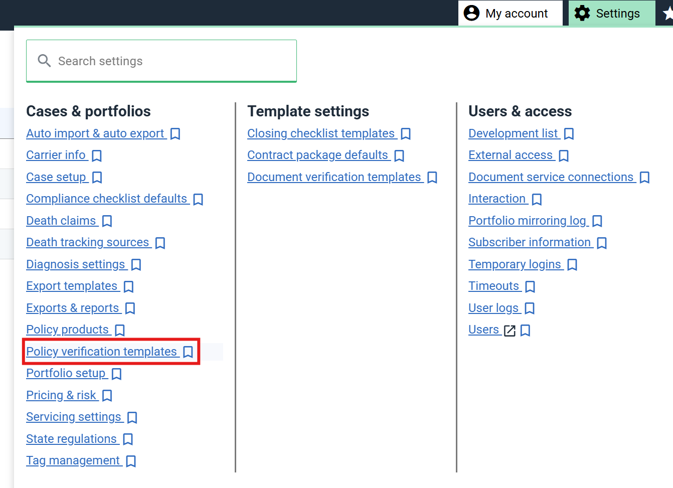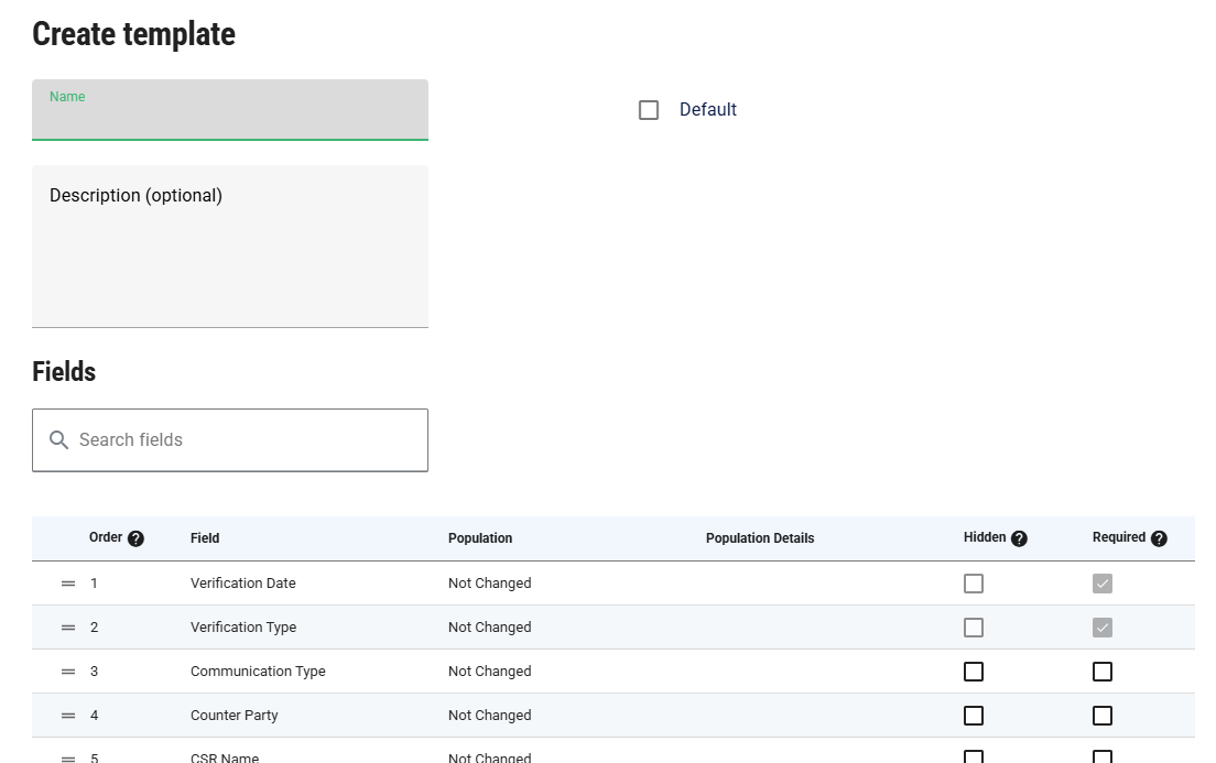 Templates replace and expand on the previous Policy Verification Defaults feature. If you had customized your defaults, those settings will be migrated into a new template labelled “Custom”. Templates include all the capabilities of Policy Verification Defaults, but also let you create multiple sets of defaults, reorder fields, and mark important fields as mandatory.