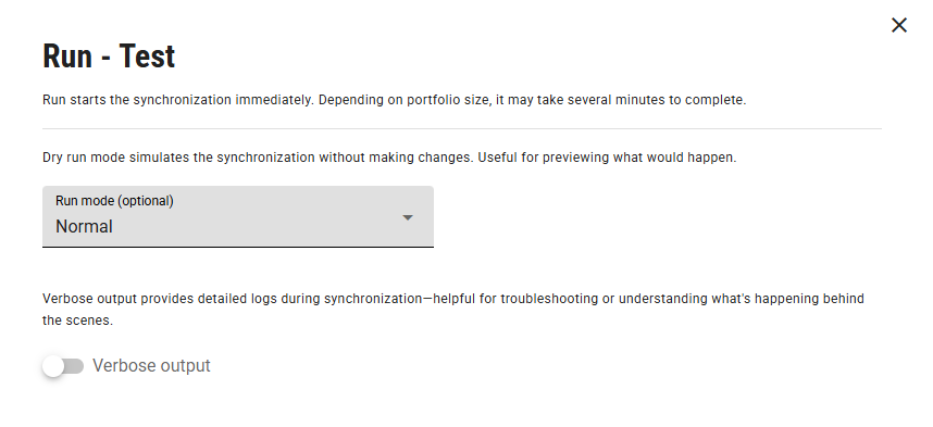 Dry run: Simulates the process without making any changes in ClariNet. It identifies which files would be matched and uploaded, allowing you to safely test new or updated integration rules.