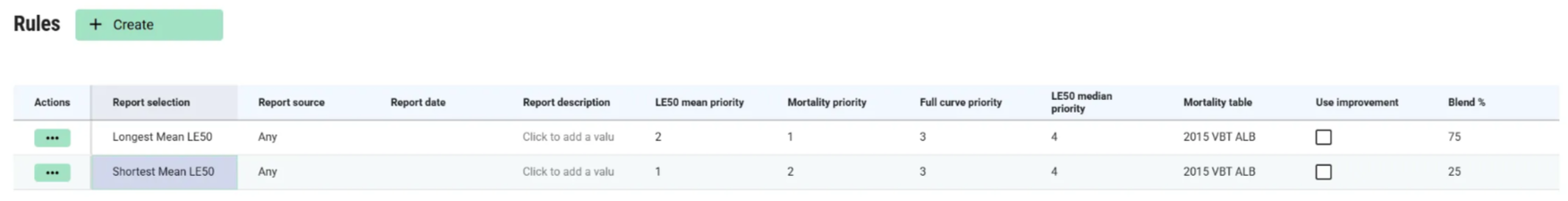 Blend 75% of the longest LE50 mean with 25% of the shortest LE50 mean from any public underwriter