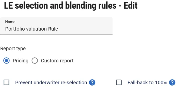 If this checkbox is ticked and there are insufficient LE reports to satisfy the blends specified, ClariNet LS will fall-back to 100% of the first report selected. An example of where this is useful is if you have a portfolio consisting mostly of cases with AVS and 21st reports, but some of the cases only have an AVS report. You can select a 50/50 blend of AVS/21st and by checking this box, the cases that only have an AVS report, will still be priced just using the AVS report.