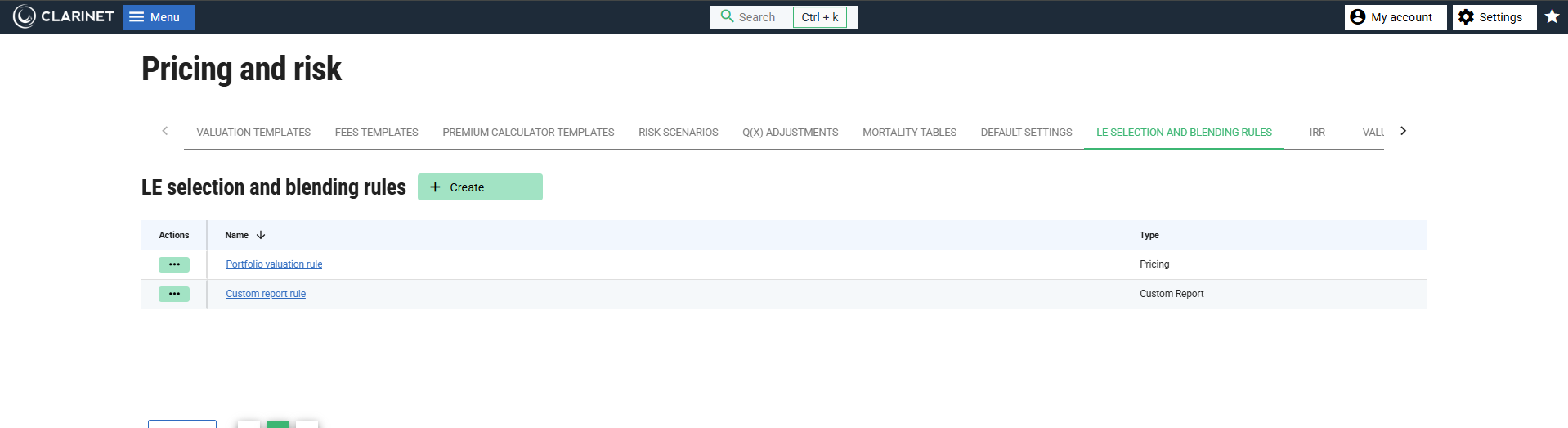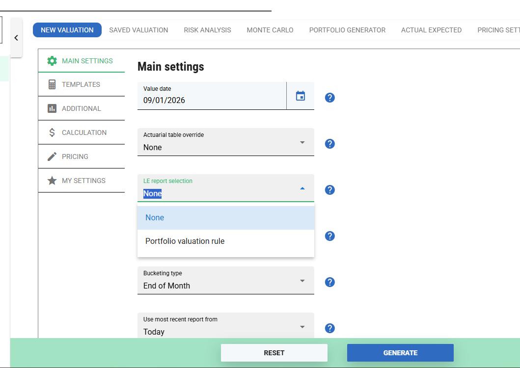 ClariNet LS supports dynamic selection and blending of LE reports when valuing a Portfolio and when using Custom Reports. This feature is accessed here: