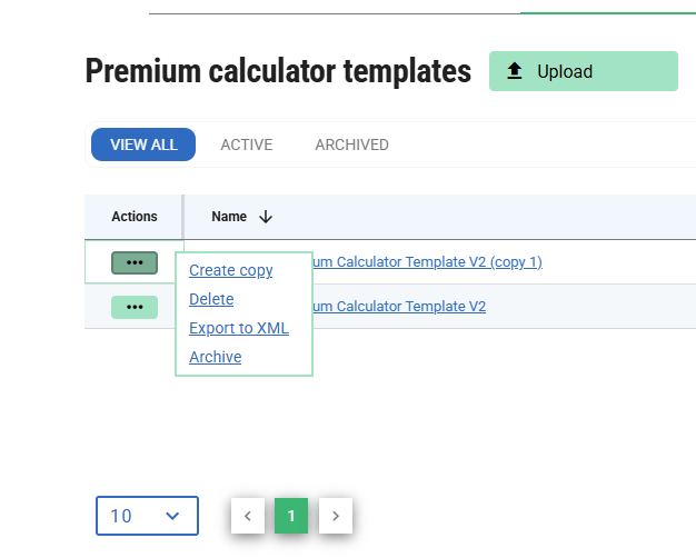 To create a new Premium Calculator Template, click Create a Copy from the action menu.