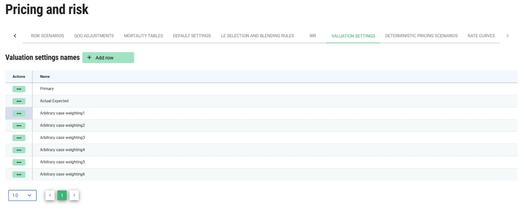 New valuation setting names can be added from the Valuation Settings tab under the Settings→ Pricing and risk page. Primary and Actual Expected are the default weighting names.