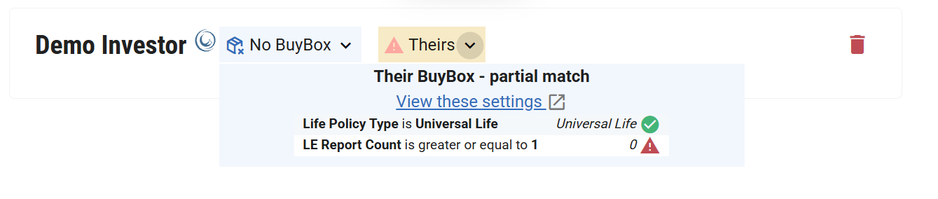For example, if you only wish to receive Universal Life policies that have an LE Report then you could configure your default BuyBox to communicate that: