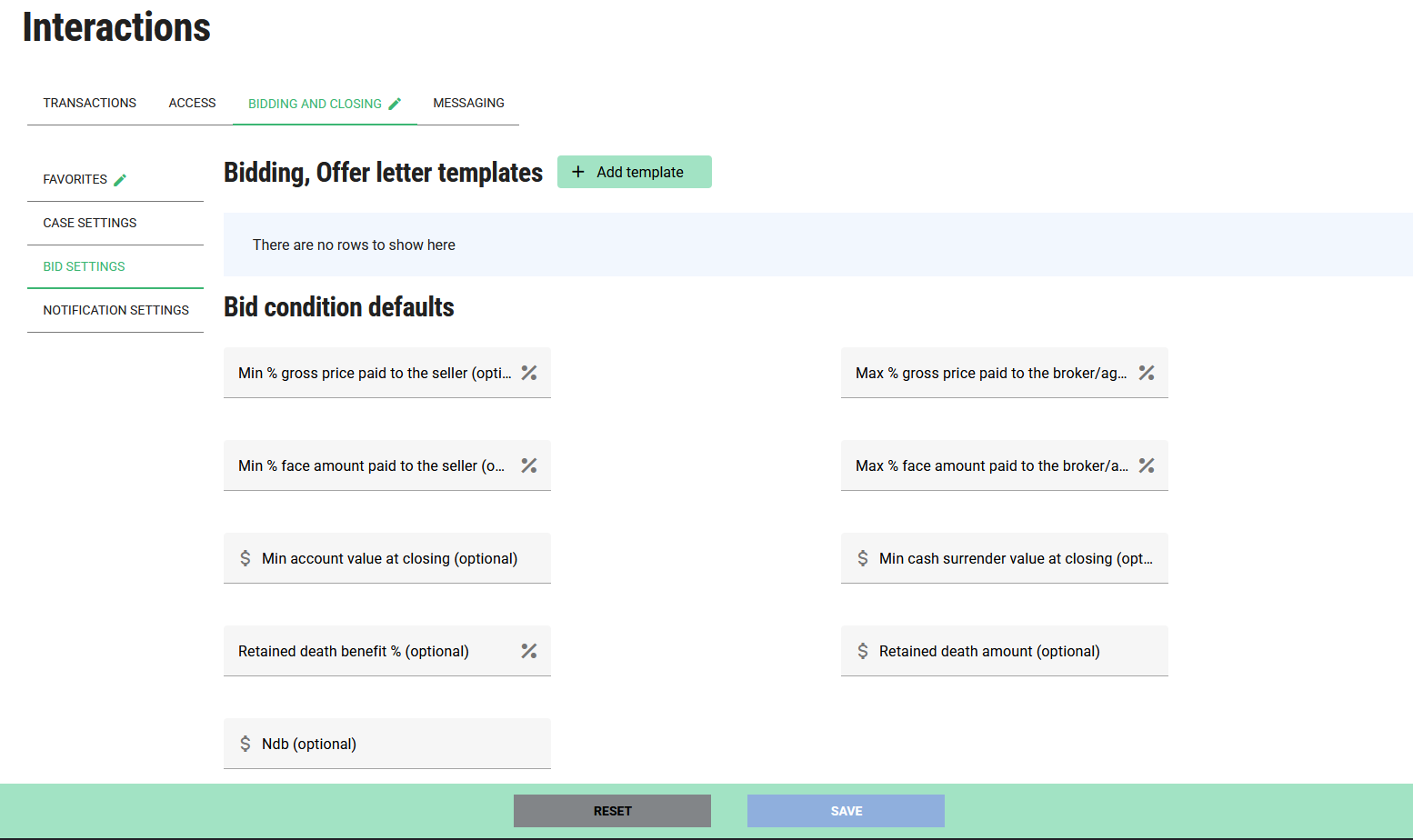 These default values for Bid Conditions appear when you select Bid Conditions on a Received Transaction. You can override these default settings before submitting a Bid.