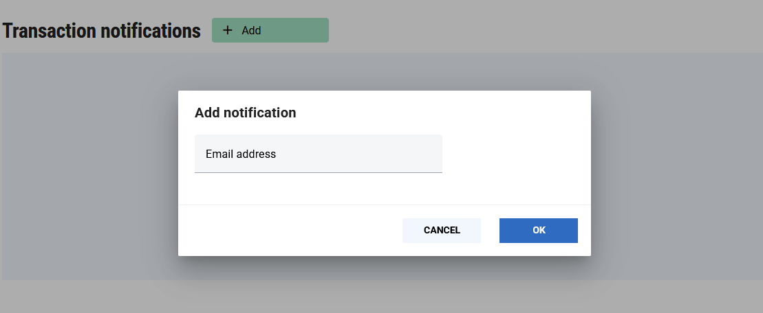 A new notification email address can be added by clicking the + Add button in the header: